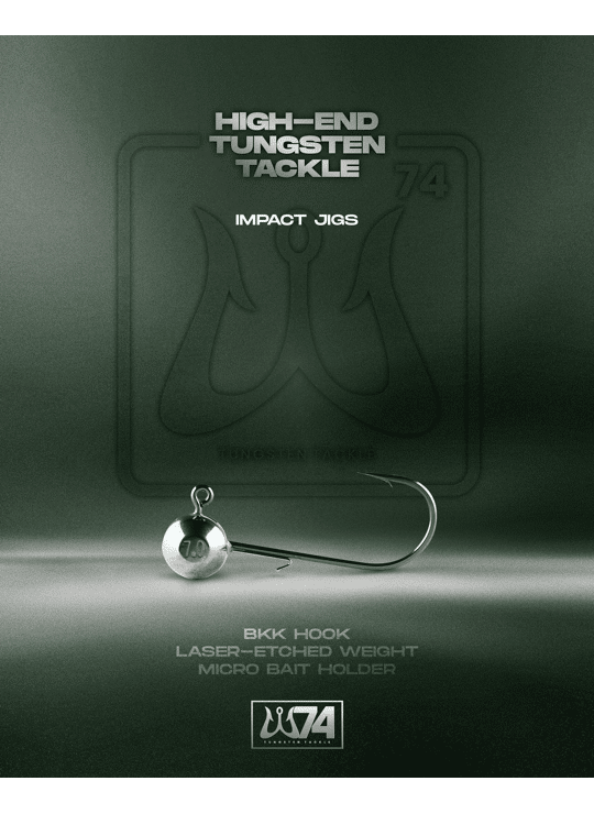 De W74 Tungsten Impact Jigs combineren ultragevoelige 97% tungsten koppen met de ongeëvenaarde betrouwbaarheid van originele BKK-haken. De compacte tungsten vorm zorgt voor snelle afzinking, maximale bodemregistratie en een strak, natuurlijk profiel in elke stroming. De BKK high-carbon hook biedt extreme scherpte, hoge trekkracht en behoudt zijn punt zelfs na zware belasting, terwijl hij shads optimaal en stabiel presenteert.