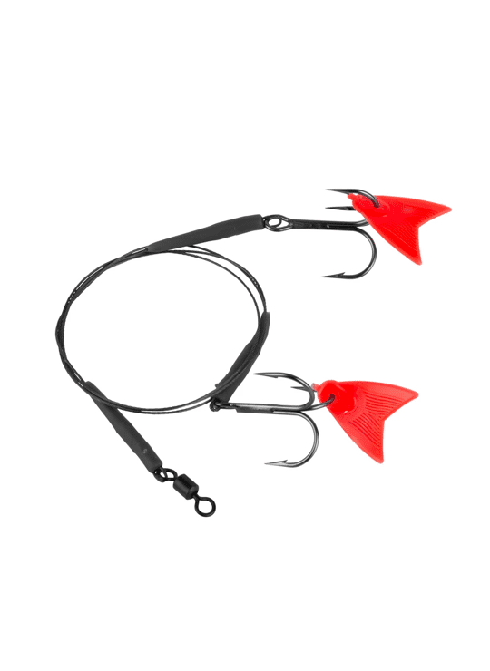 "Skeater Deadbait Twin Hook Trace – Barbed 50 cmDeze hoogwaardige trace is speciaal ontworpen voor het vissen met dood aas en is voorzien van twee Skeater Jaw Point-dreggen met weerhaak voor een stevige haak en een veilige plaatsing van het aas. De trace is gemaakt van ultrasoepel, 49-draads ongecoat draad en voorzien van een fel UV-rode aasvin op beide dreggen, wat extra visuele aantrekkingskracht toevoegt om aanbeten uit te lokken.• Ideaal voor het vissen met dood aas• Twee Skeater Jaw Point dreggen voor een veilige haakbevestiging• UV-rode aasvin verhoogt de visuele aantrekkingskracht• Lengte 50 cm• Verkrijgbaar in de maten: 2, 4, 6 en 8• Gemaakt van 15 kg 49-draads ongecoate staaldraad (12 kg voor maat 8)• Onopvallende bruine coating voor lage zichtbaarheid• Gemonteerd met een zwarte Skeater Rolling Swivel maat 4• Geleverd in recyclebare kartonnen verpakking"